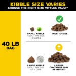 - STORAGE CAPACITY: The capacity of each Vittles Vault is based on kibble shape and density. Larger kibble (about the size of a dime) often requires a container one or two sizes larger than the weight of the pet food. When in doubt, round up to the next size.