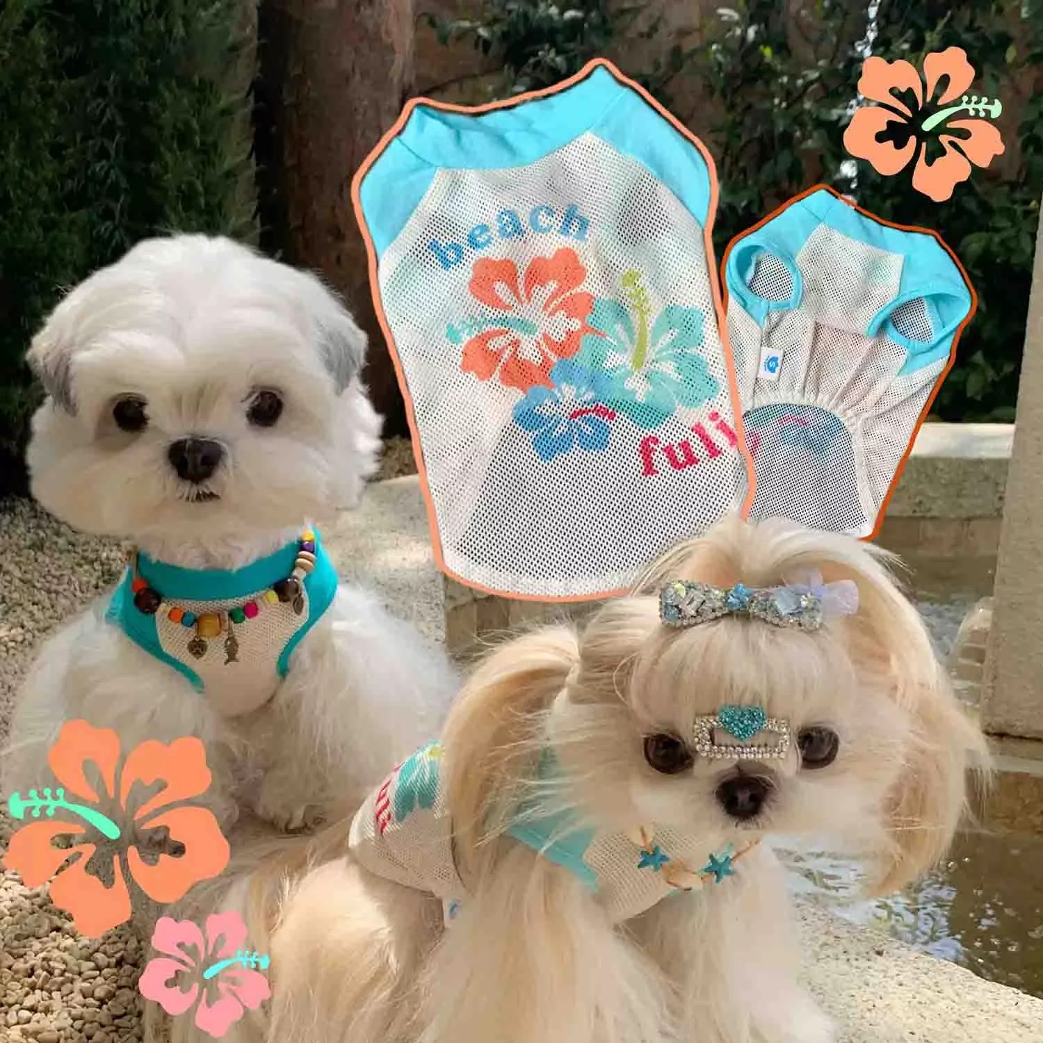 Tags: breathable pet outfit, cute dog shirt, island dog fashion, small dog apparel, summer dog clothes, tropical dog wear