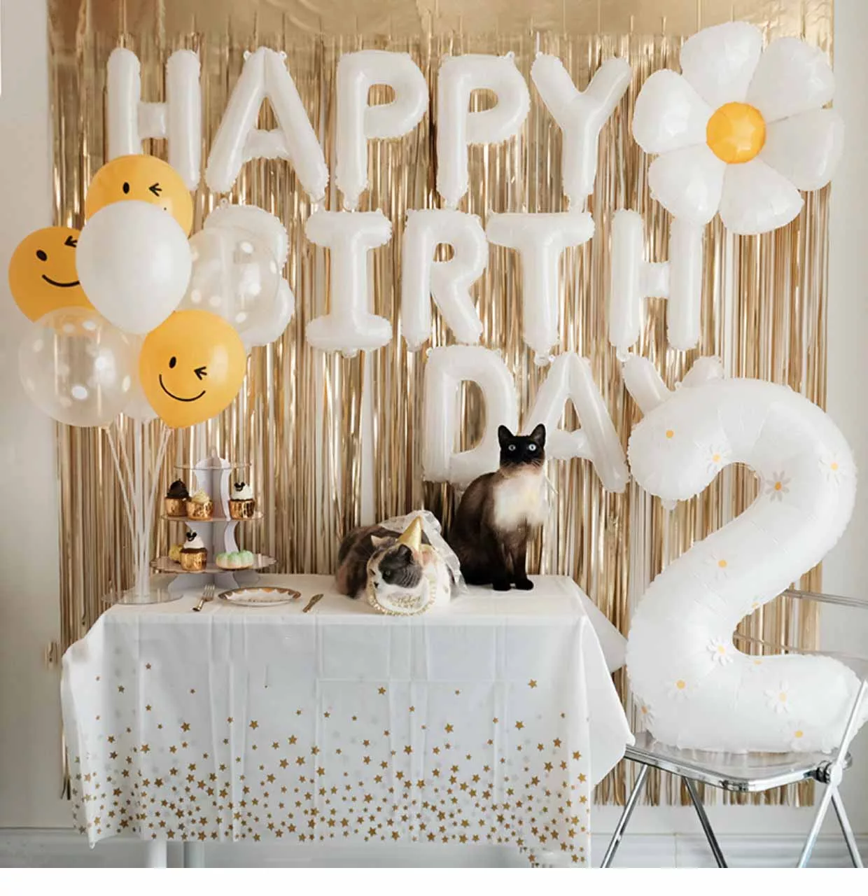 This all-in-one kit includes “Happy Birthday” letter balloons, a cute daisy flower decoration, a matching pet bib, and cheerful balloons to set the mood.